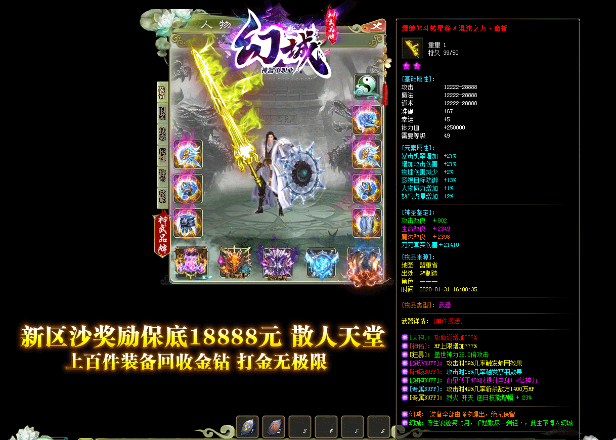 幻城神器单职业·官方回收价格表